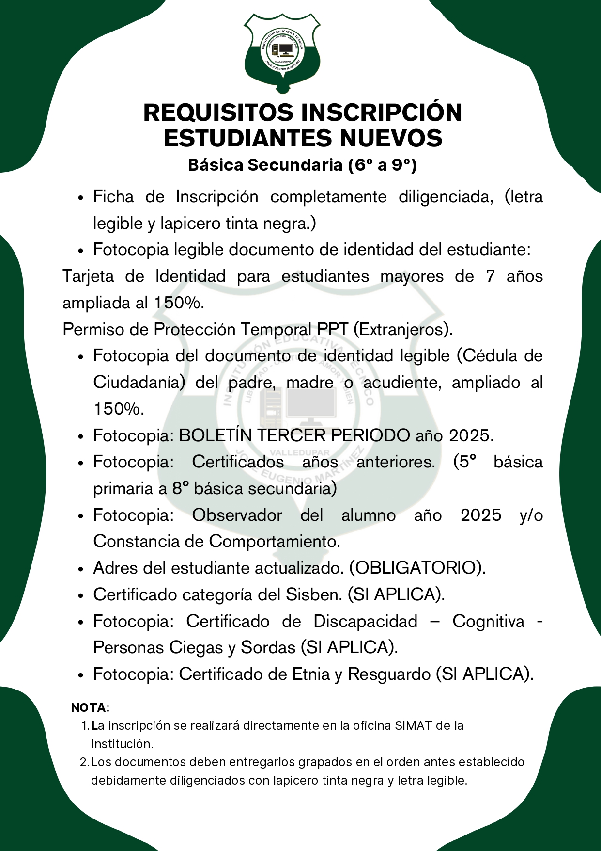 Requisitos Inscripción – Estudiantes Nuevos de Preescolar y Básica Primaria Requisitos Inscripción - Estudiantes Nuevos de Preescolar y Básica Primaria