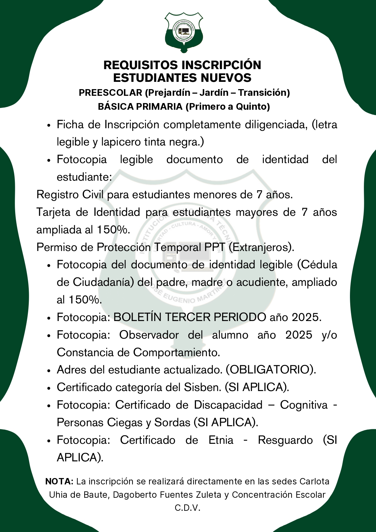 Requisitos Inscripción – Estudiantes Nuevos de Básica Secundaria Requisitos Inscripción - Estudiantes Nuevos de Básica Secundaria